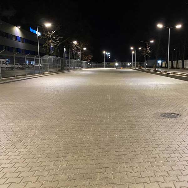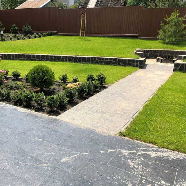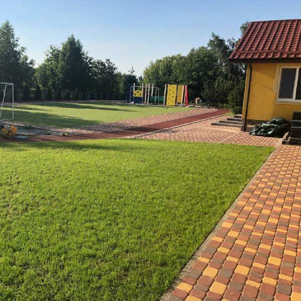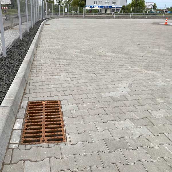 Проводимо розчистку майданчика до замощення бруківкою. Спершу за допомогою власної спецтехніки знімаємо верхній шар грунту. Залежно від типу поверхні (пішохідна зона, рух легкових авто чи вантажного транспорту) глибина зняття сягає 15-60 см. За необхідності проводимо дренажні роботи, облаштовуємо зливові колодязі, дощоприймачі, фільтраційні поля тощо. Облаштовуємо та ущільнюємо підсипку для стабілізації грунту. Встановлюємо поребрики, палісад чи бордюр. Після цього влаштовуємо та ущільнюємо віброплитою основу із щебеню. Це ж робимо з монтажною підсипкою із відсіву.